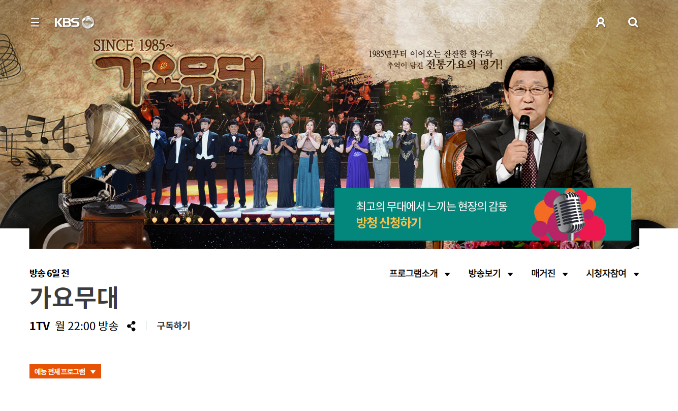 3. 가요무대를 클릭하여 가요무대 홈페이지로 이동합니다.